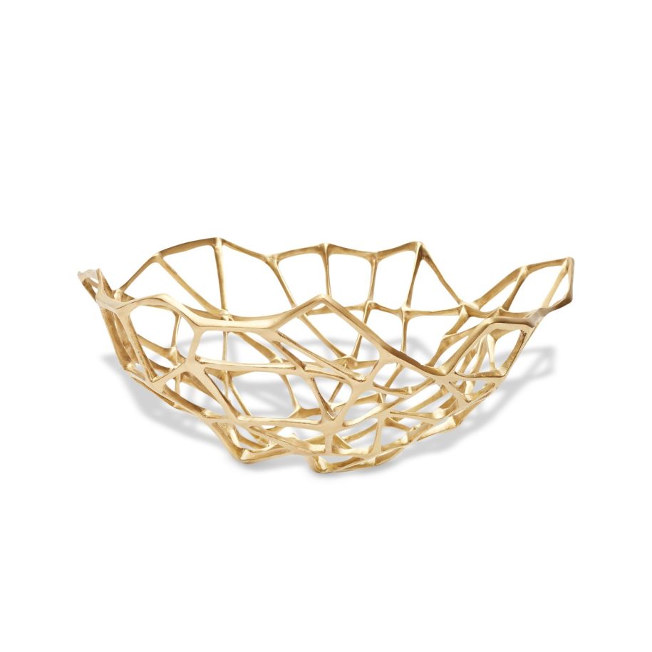 A sculptural solid brass bowl for the table top. Its open structure works as a display platter or unusual table top piece.